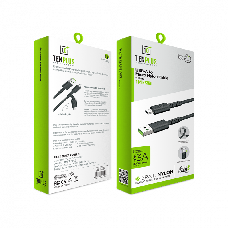 تن بلس كيبل شحن مايكرو USB قماش مقاوم للقطع | تقسيط | استلام فوري | أرخص سعر