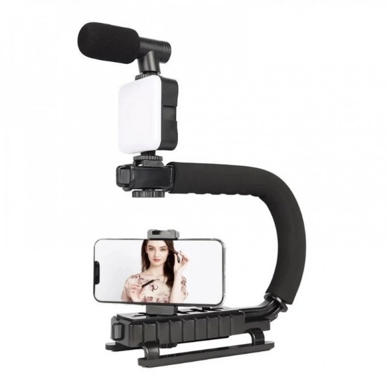 مانع اهتزاز لتصوير الفيديو مع اضاءة LED وميكروفون مع جهاز تحكم عن بعد